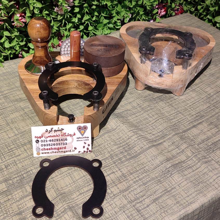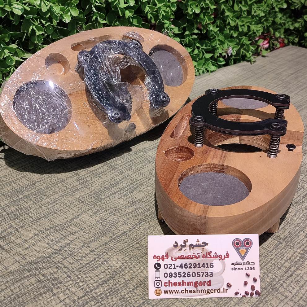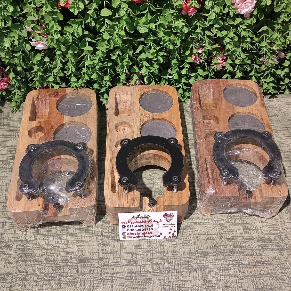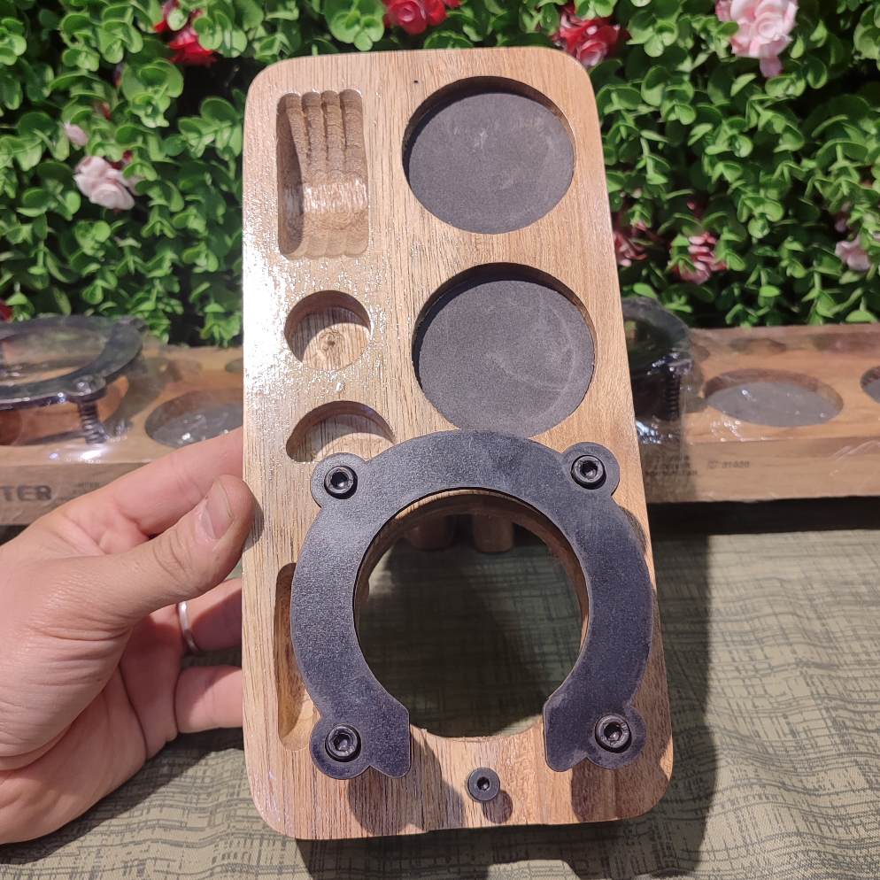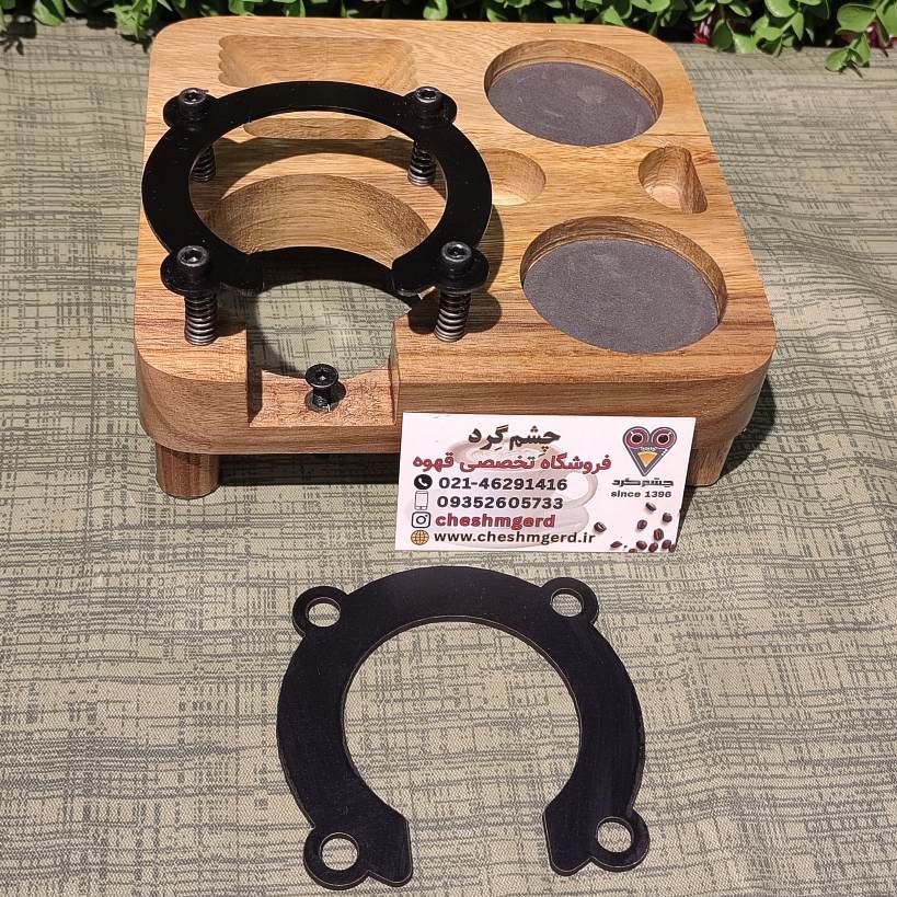 استند مستطیل و مثلث چوبی مناسب جای گیری پرتافیلتر دستگاهتان است که دو مکان لولر و تمپر نیز در آن وجود دارد و میتوانید نیدل خود رانیز در آن قرار بدهید.