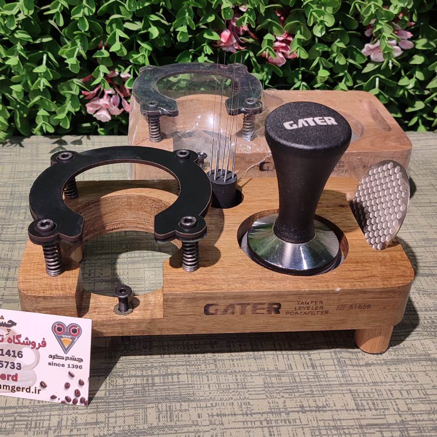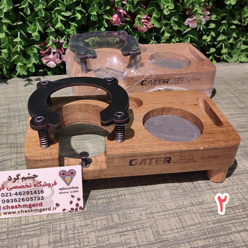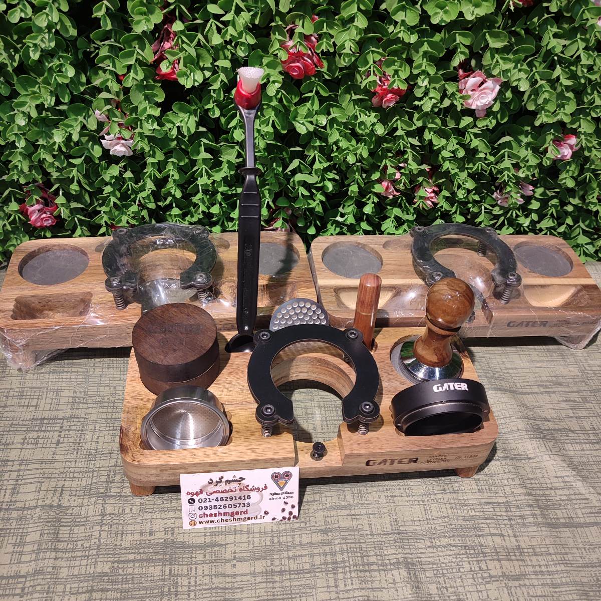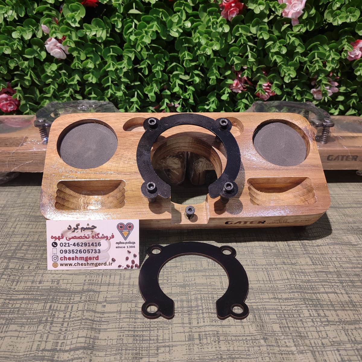 استند مستطیل و مثلث چوبی مناسب جای گیری پرتافیلتر دستگاهتان است که دو مکان لولر و تمپر نیز در آن وجود دارد و میتوانید نیدل خود رانیز در آن قرار بدهید.