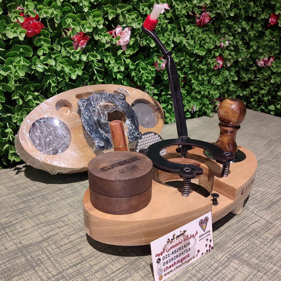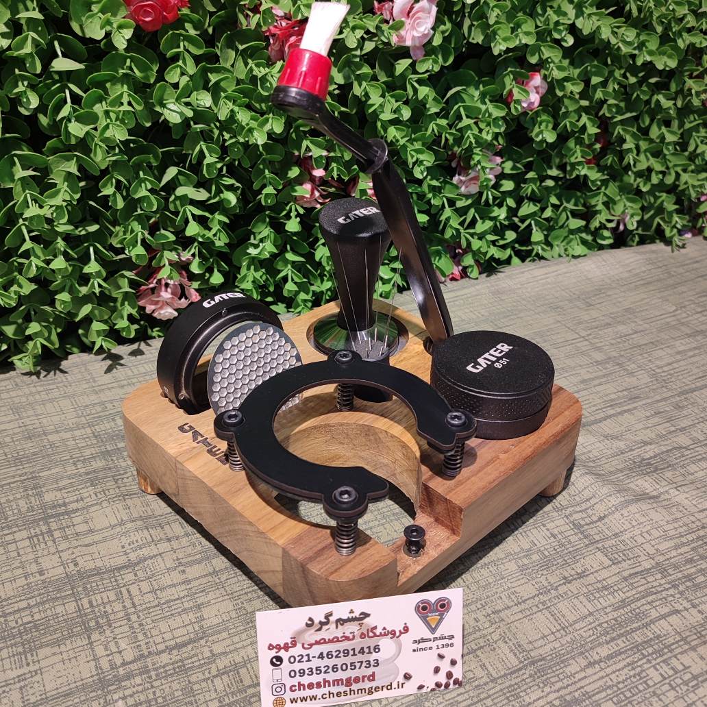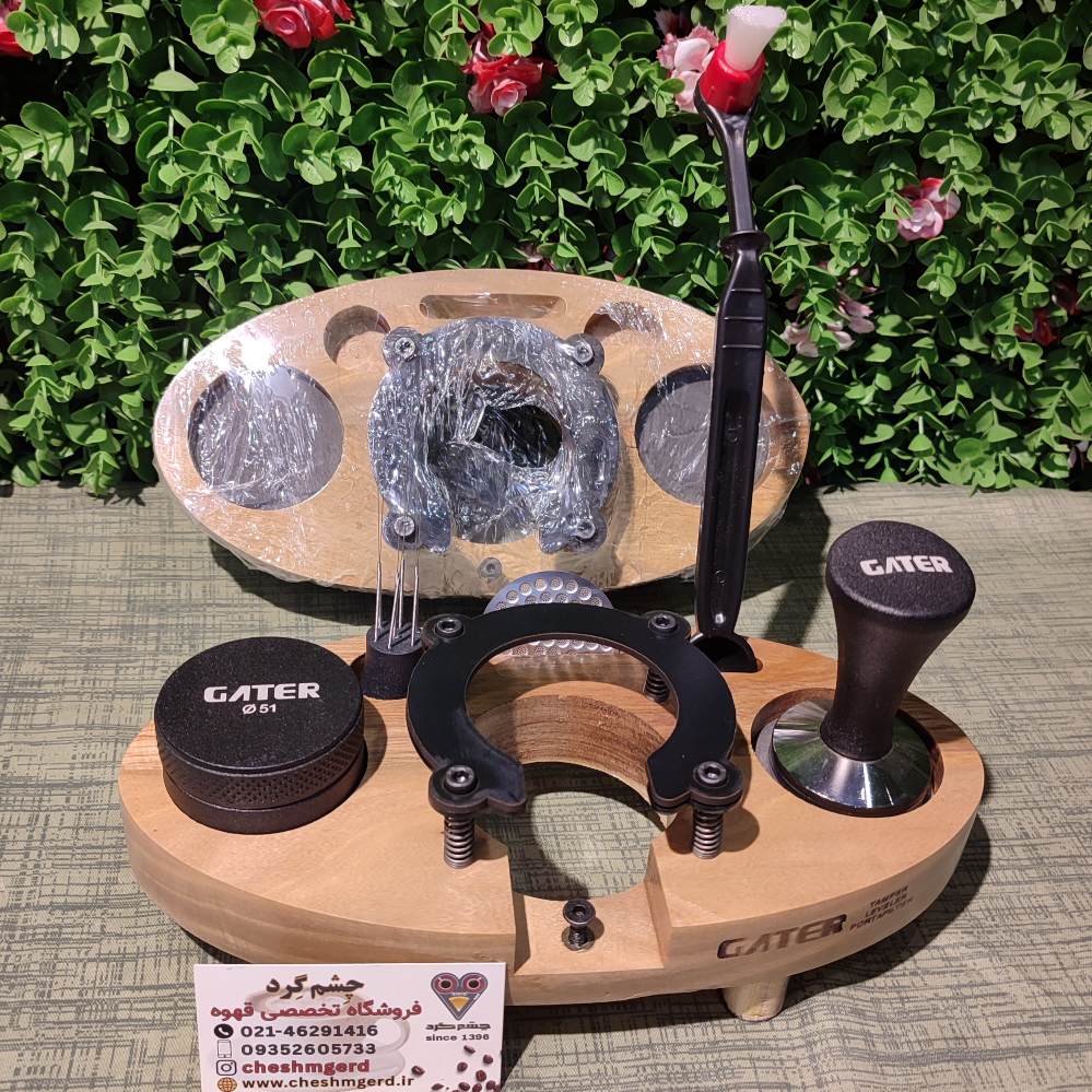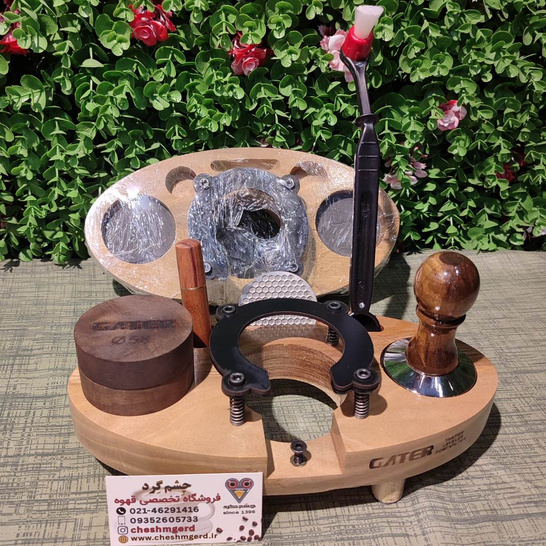 استند مستطیل و مثلث چوبی مناسب جای گیری پرتافیلتر دستگاهتان است که دو مکان لولر و تمپر نیز در آن وجود دارد و میتوانید نیدل خود رانیز در آن قرار بدهید.
