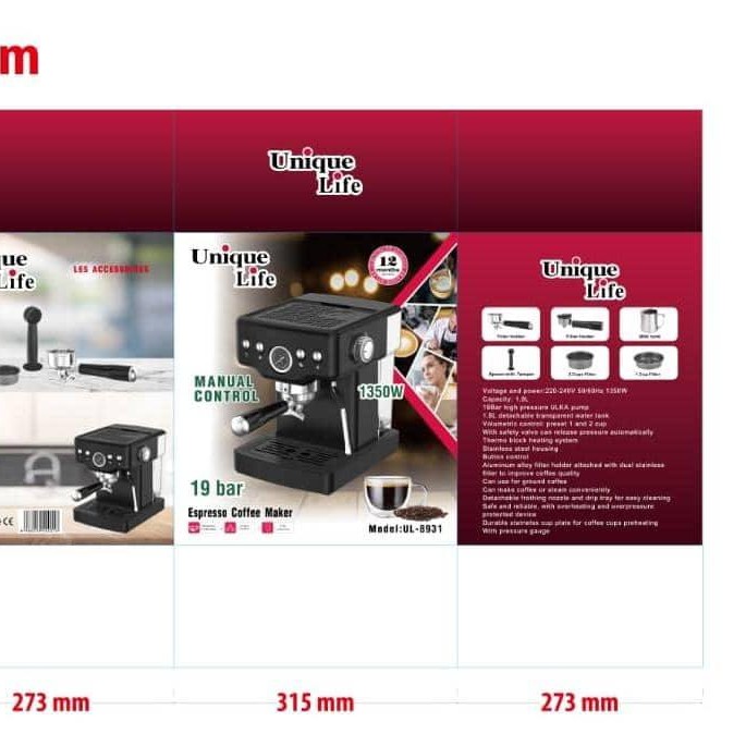 اسپرسوساز یونیک لایف مدل UL-8931 یکی از جدید ترین طراحی های زیبای این برند با توان مصرفی 1350 وات