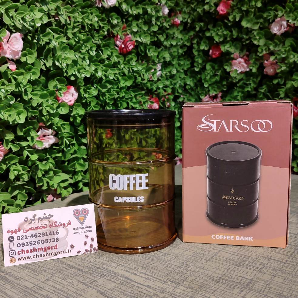 بانکه قهوه شفاف مخصوص نگه داری کپسول قهوه از برند استارسو دارای درب و ظرفیت جای گیری حدود 20-22 عدد کپسول