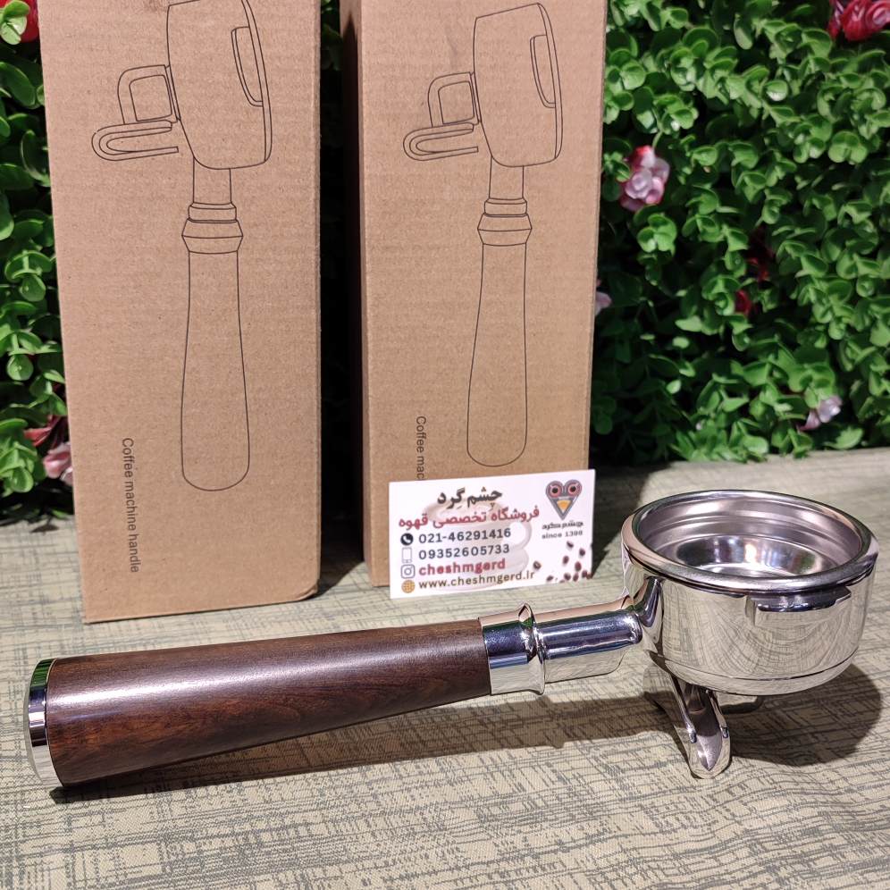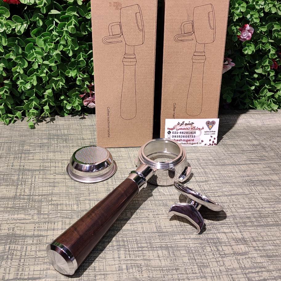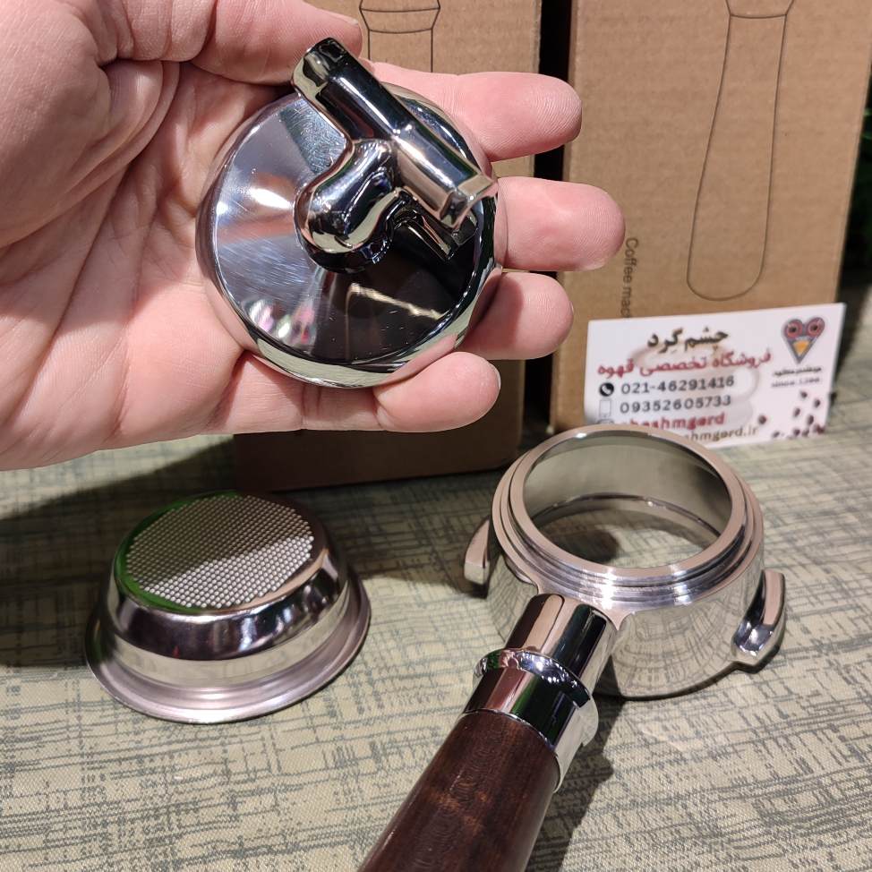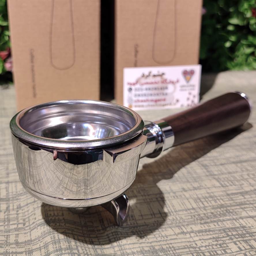 پرتافیلتر دوکاره دو پین 58 میلیمتر استیل دسته چوبی ( نیکد + ناودونی )